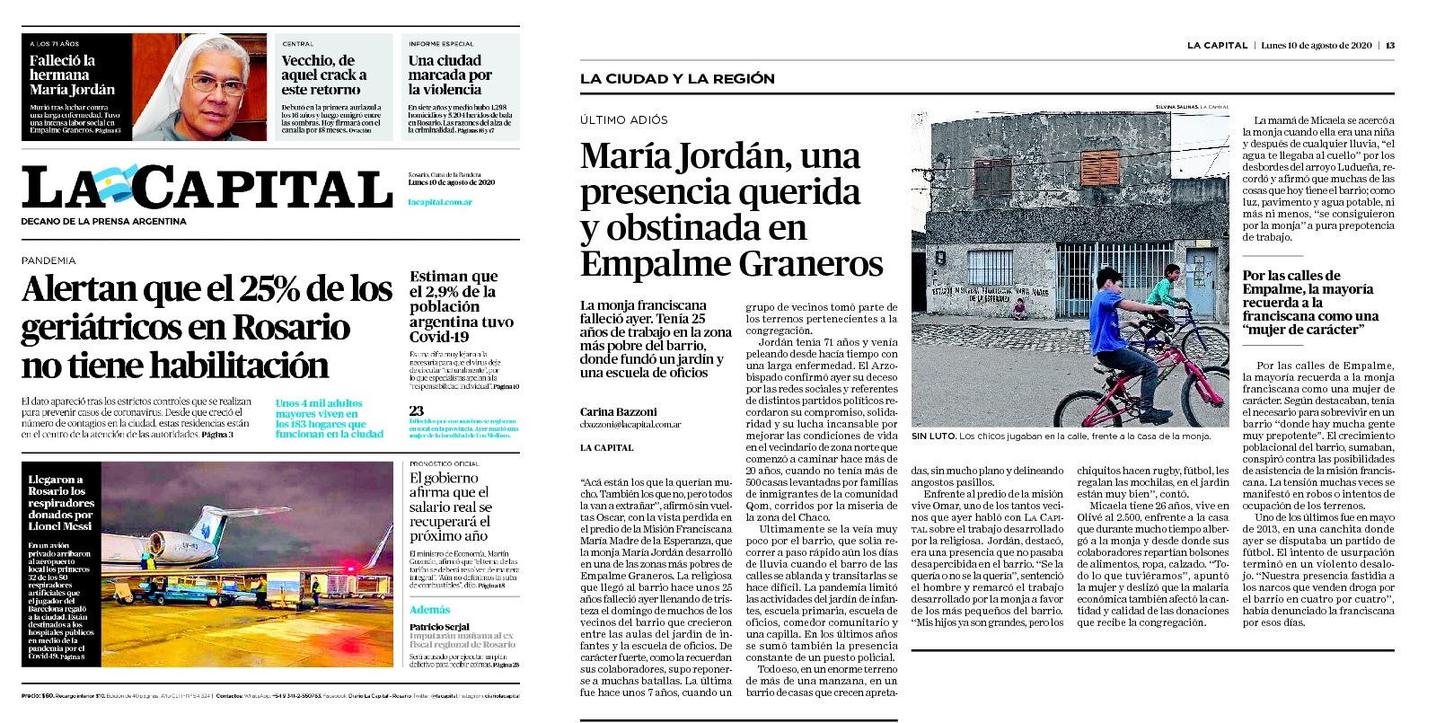 Murió la hermana María Jordán, destacada referente social del barrio Empalme Graneros – 09/08/2020
